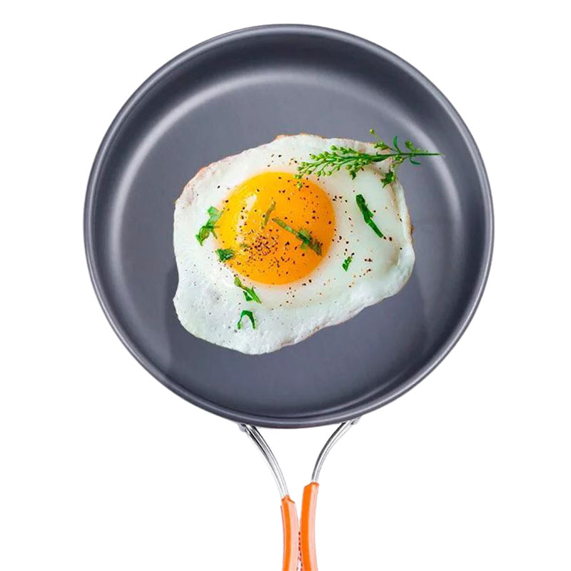 Чайник об'ємом 1,1 л дозволить отримати насолоду від свіжого чаю або кави і зігрітися в подорожі. Каструля на 2 л та сковорідка діаметром 18 см і заввишки 4,5 см виконані з зручними ручками, які не будуть нагріватися так сильно як метал.